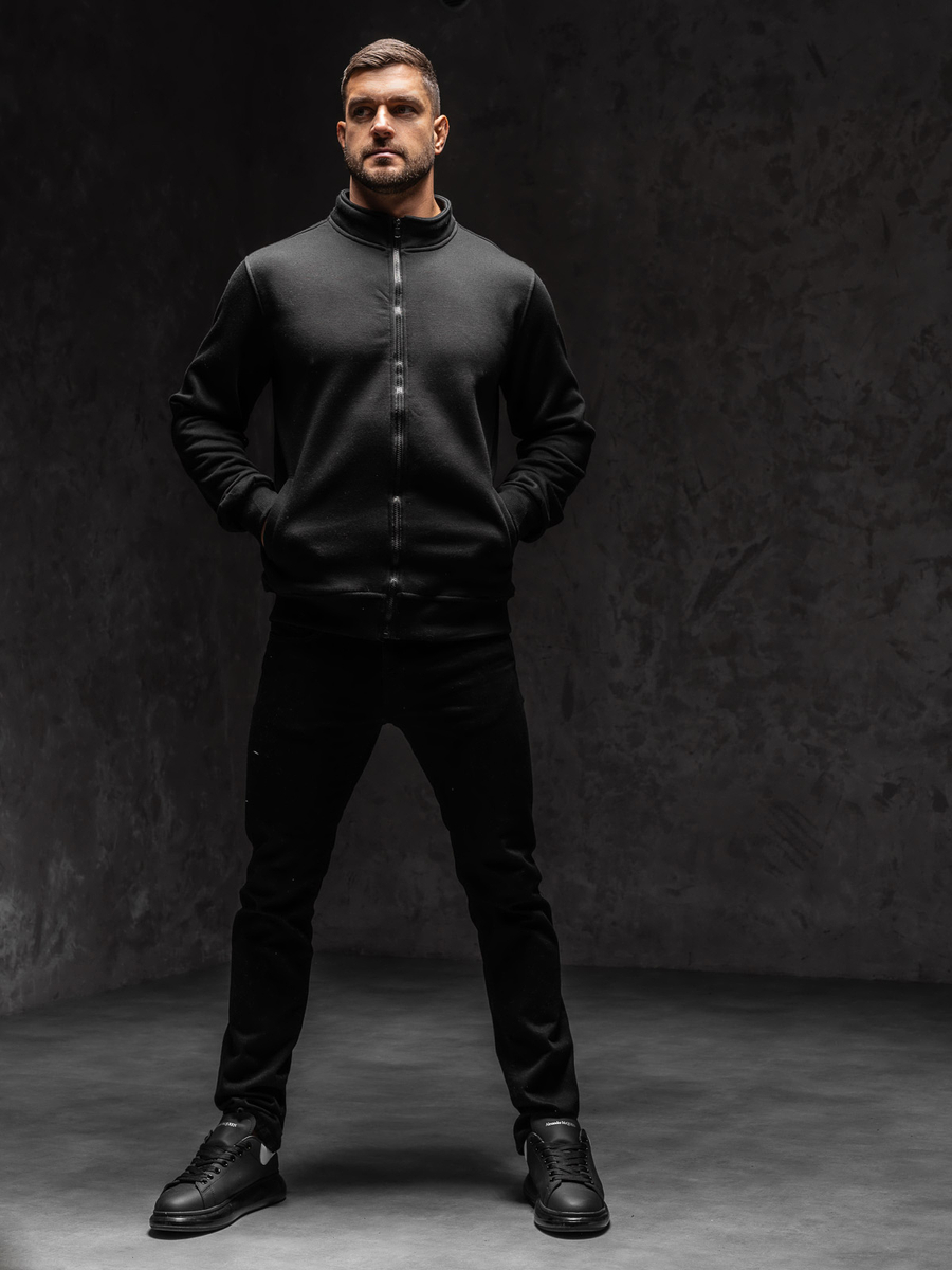 Felpa senza cappuccio e con zip da uomo in colore nero Bolf B002A1 è completamente liscia. Chiuso con lo zip Perfetta per lo sport e lo styling di tutti i giorni, può essere indossato anche con outfit street. Ha un delicato collare di tipo stand-up. Non ha tasche. Le maniche e il fondo della felpa sono rifiniti a bordi elasticizzati. La felpa, grazie alla sua semplicità e qualità di lavorazione, è senza tempo e può essere indossata per molte stagioni. La felpa si inserisce perfettamente nelle tendenze della moda contemporanea, è realizzato in tessuto piacevole al tatto, leggero e caldo. Una felpa in stile sportivo può essere indossata nelle giornate più fresche e può essere portata su una maglietta sottile o su una longsleeve.