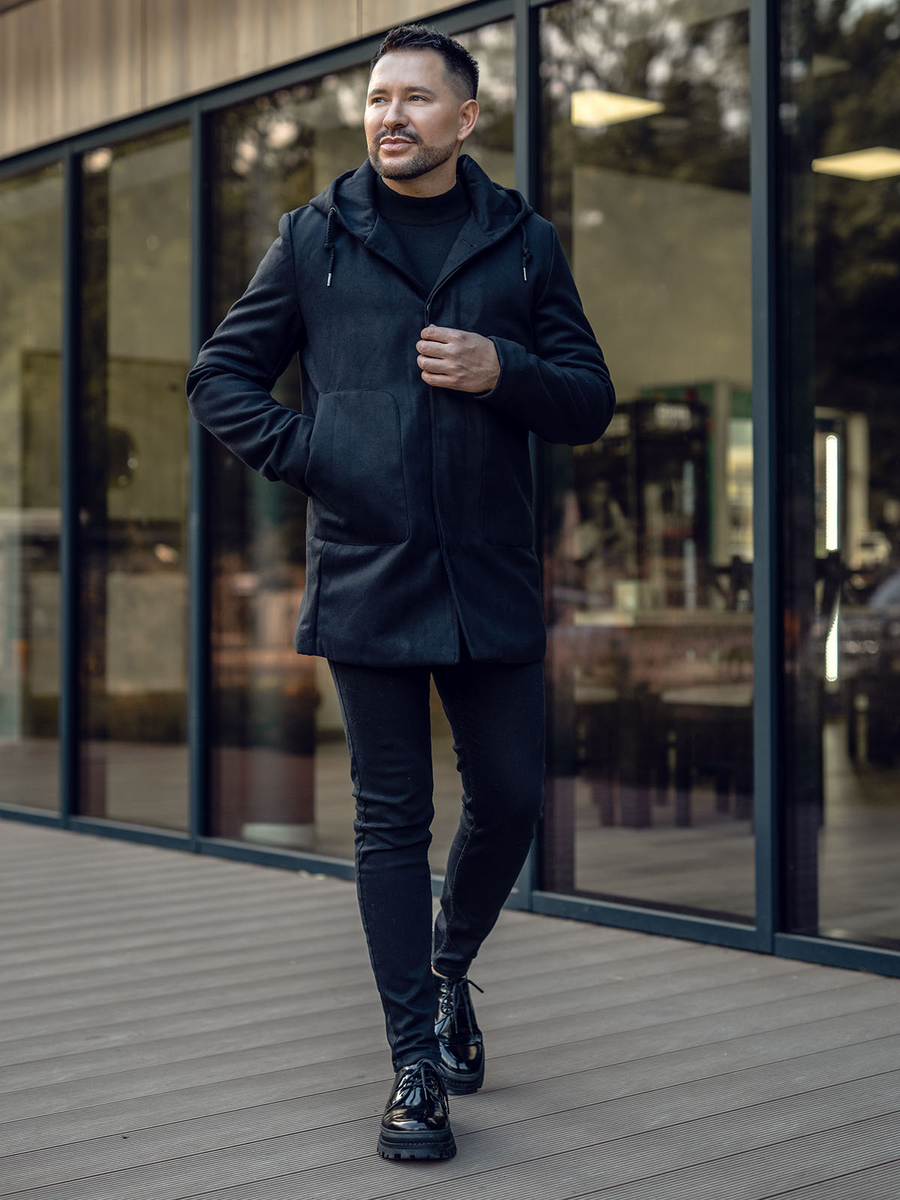 Il cappotto invernale da uomo nero con cappuccio Bolf 79B3A-197 è un cappotto universale che si adatterà perfettamente al guardaroba di un uomo elegante e alla moda. È un classico cappotto con bottoni. Il cappuccio regolabile con coulisse aggiunge carattere. Ha due tasche esterne e una tasca interna. Il cappotto sta benissimo sia abbottonato che sbottonato. È realizzato in tessuto di alta qualità. È molto originale, ma ha anche un'eleganza senza tempo. Si abbinerà perfettamente con chino, camicia e giacca come outfit più formale. Abbinalo a jeans e maglione e otterrai un look per le uscite di tutti i giorni.