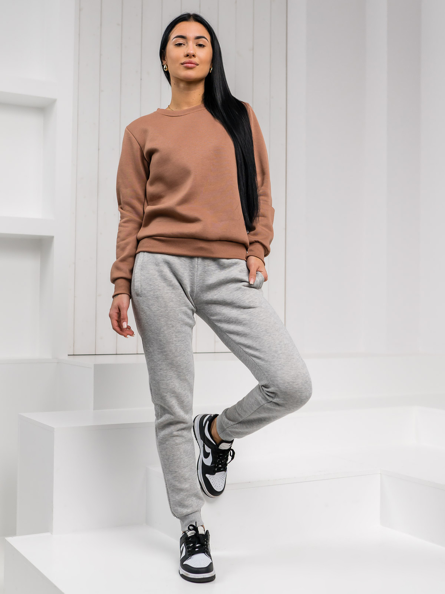 La felpa da donna Bolf W01A1 è realizzata in uno stile minimalista. Il taglio classico e semplice rende la felpa adatta a quasi tutte le figure femminili. La felpa è liscia, realizzata in un piacevole tessuto per tuta, infilata attraverso la testa. Nella parte inferiore e sulle maniche finiscono con ampi bordi. La felpa non ha il cappuccio, ha una scollatura piccola e tonda, con un bordo dello stesso colore. Il prodotto di base funzionerà in combinazione con molte altre parti dell'abbigliamento.