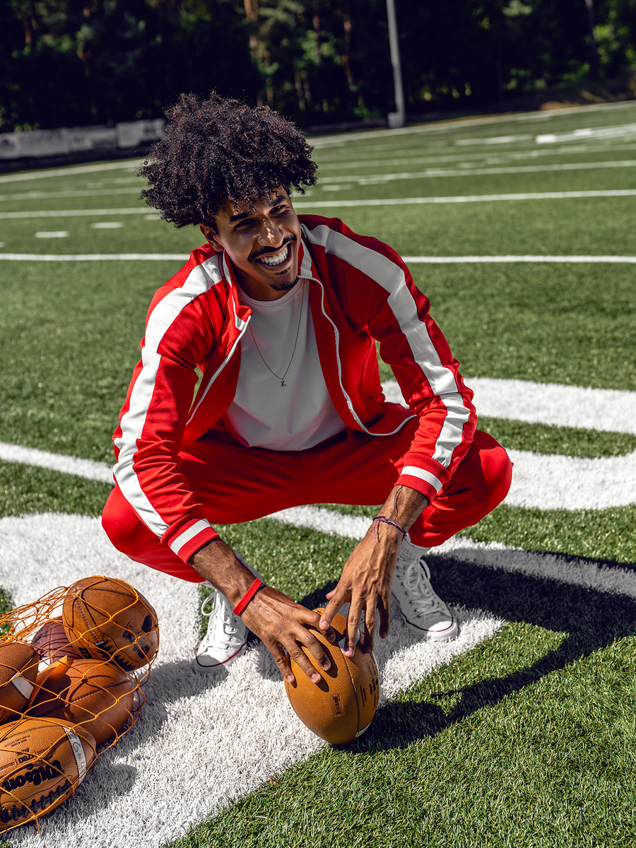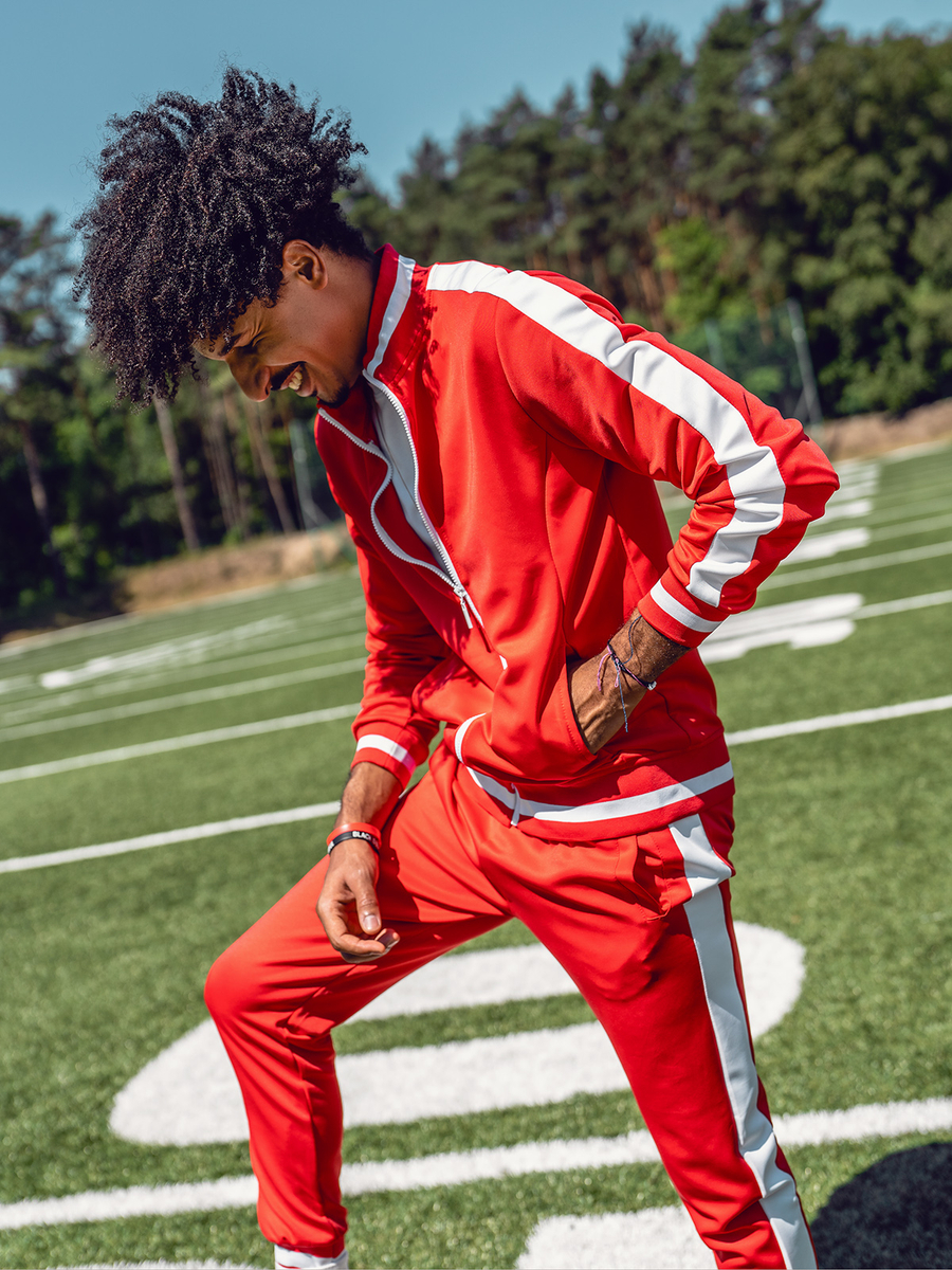 La tuta da uomo rossa Bolf 8C99A è un prodotto che assicura praticità e comfort, anche durante gli allenamenti più impegnativi. Il set comprende una felpa con cerniera e pantaloni della tuta. La felpa ha un colletto rialzato, mentre i pantaloni sono regolabili in vita con una forte coulisse e un laccio. Il look sportivo è dato da un taglio semplice e aderente. Il set ha quattro pratiche tasche: due tasche laterali senza chiusura nella felpa e due tasche esterne nei pantaloni. Il set di tute può essere una base universale per costruire stili quotidiani o sportivi. Sia la felpa che i pantaloni possono essere abbinati ad altri capi di abbigliamento per creare nuovi abbinamenti di outfit. Il set si abbinerà perfettamente alla t-shirt e alla giacca sportiva.